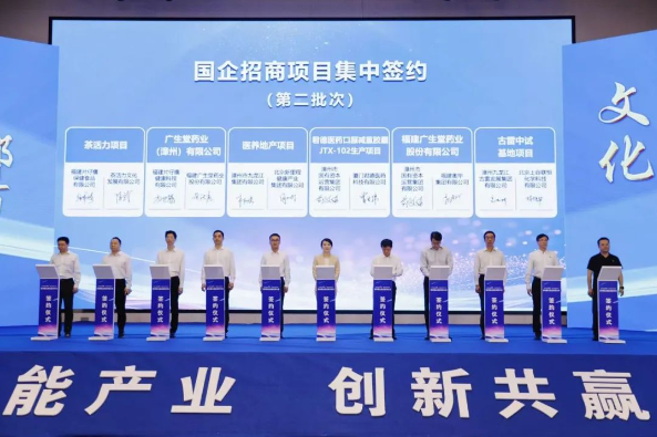 在国企招商项目第二批次集中签约环节,集团发挥国资带动和基金赋能医药产业作用,通过漳州圆山大健康产业投资基金有效链接福建广生堂药业公司与漳州片仔癀药业公司两家省内主板医药龙头上市企业,切实做好培育实体经济壮大的“耐心资本”;同时拟参与投资君德医药口服减重胶囊生产项目,该产品填补国内同类型产品空白,适应症广泛,市场前景巨大。